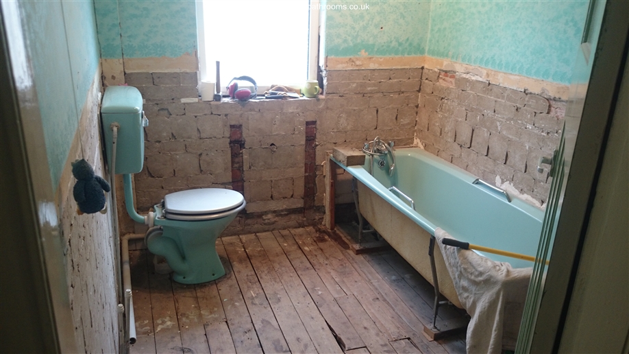 Full bathroom installation including UPVC ceiling with down-lights, full walls and floor tiling, chrome taps, trims and accessories, and all associated joinery, plumbing and electrics.