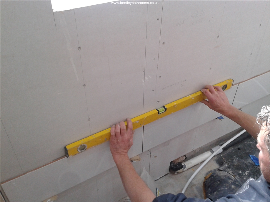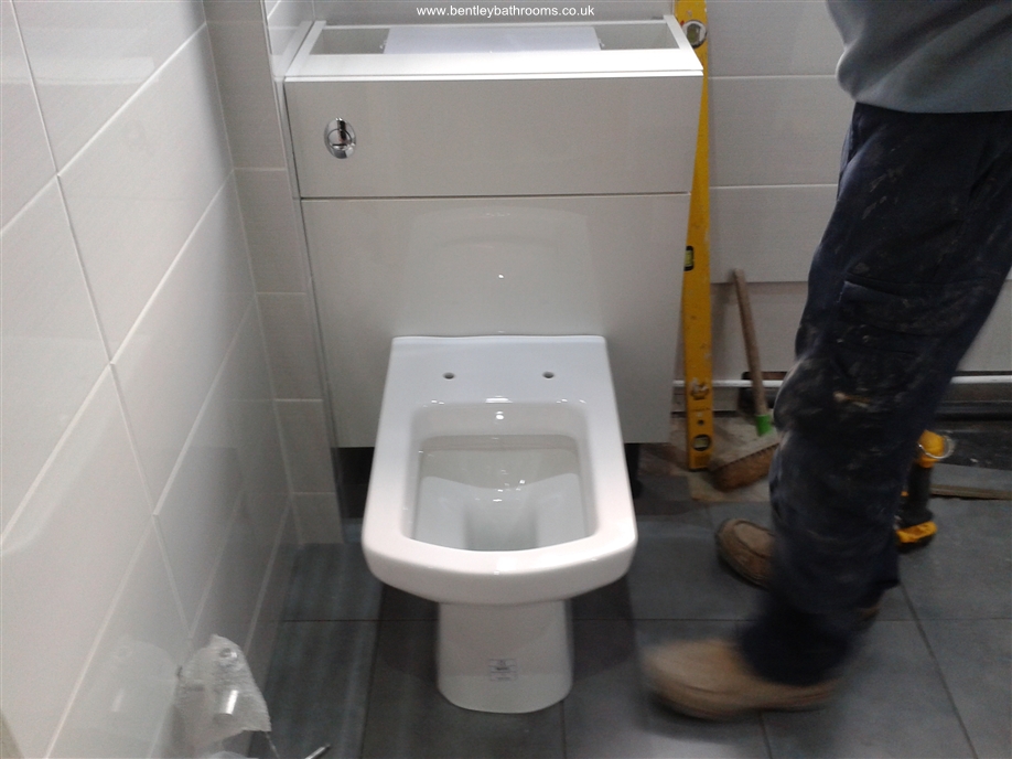 Full wet-room installation including UPVC ceiling with down-lights, full walls and floor tiling, chrome taps, trims and accessories, and all associated joinery, plumbing and electrics.