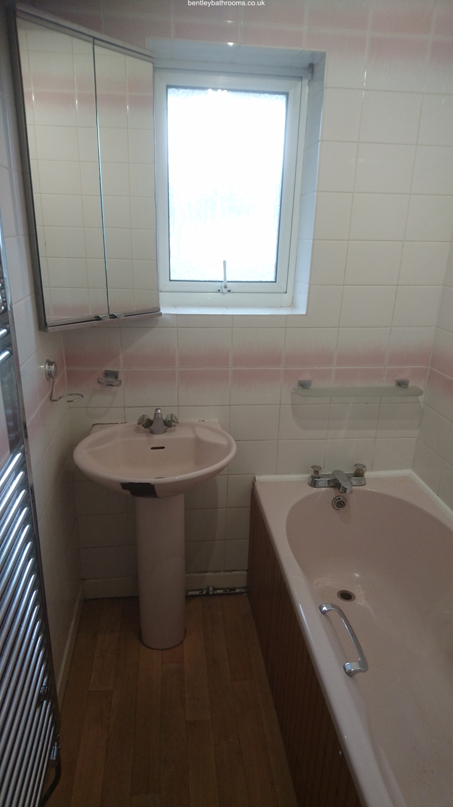 Full wet-room/bathroom installation including wet-floor area with glass screen, wall-hung vanity basin, illuminated mirror, heated towel rail, wall and floor tiling with feature wall and LED strip mood-lighting, upvc suspended ceiling with down-lights, accessories, and all associated plumbing, electrics and joinery.