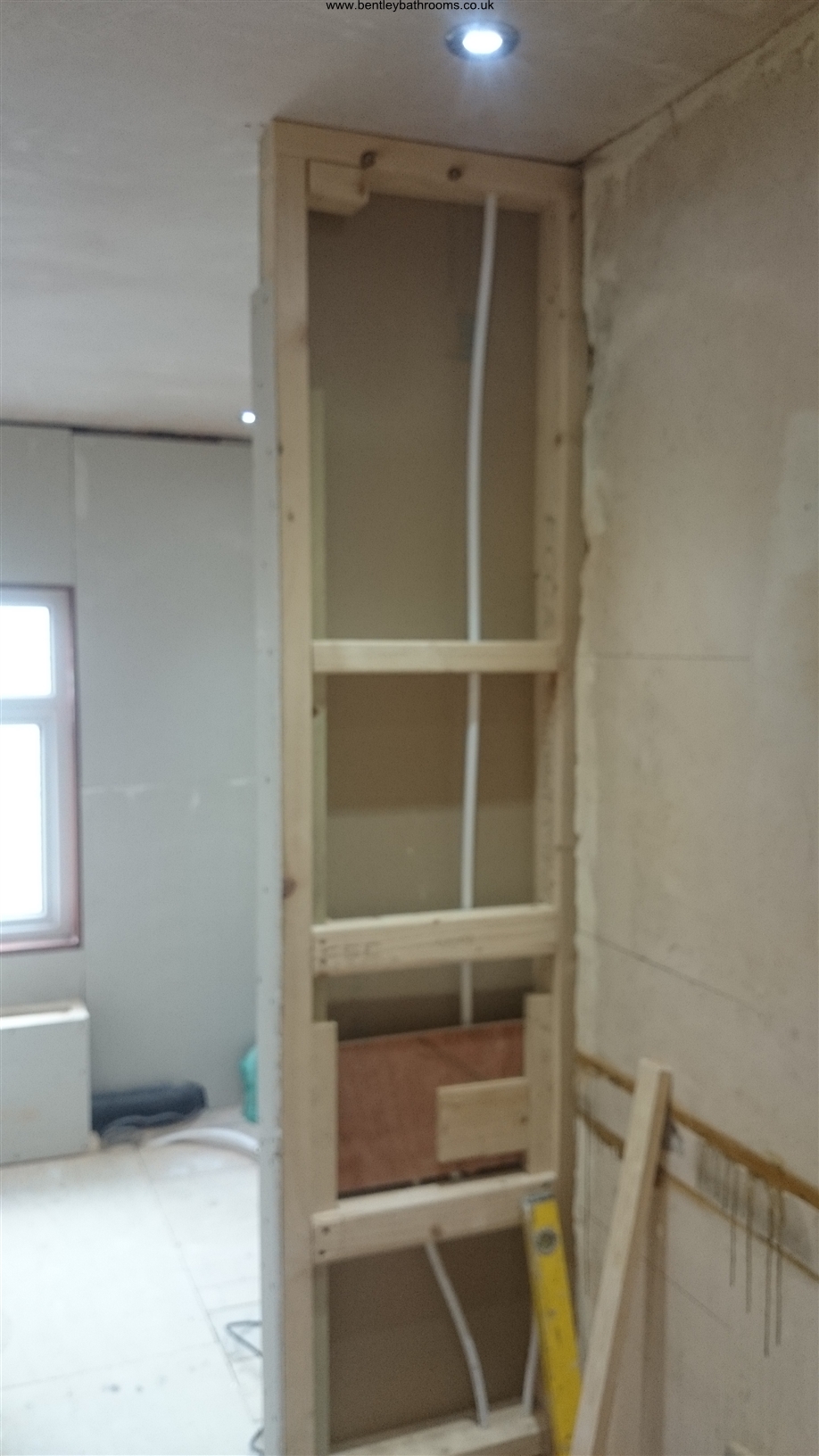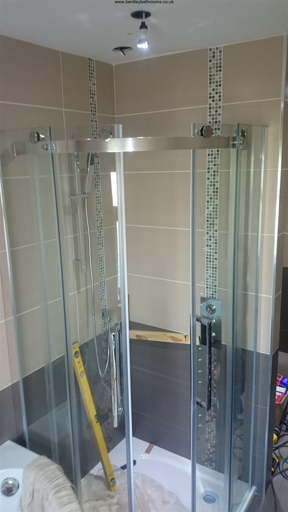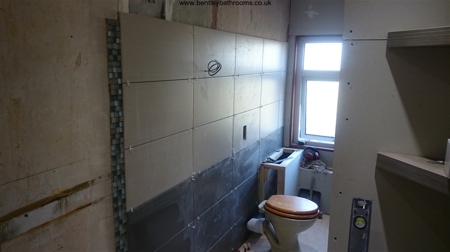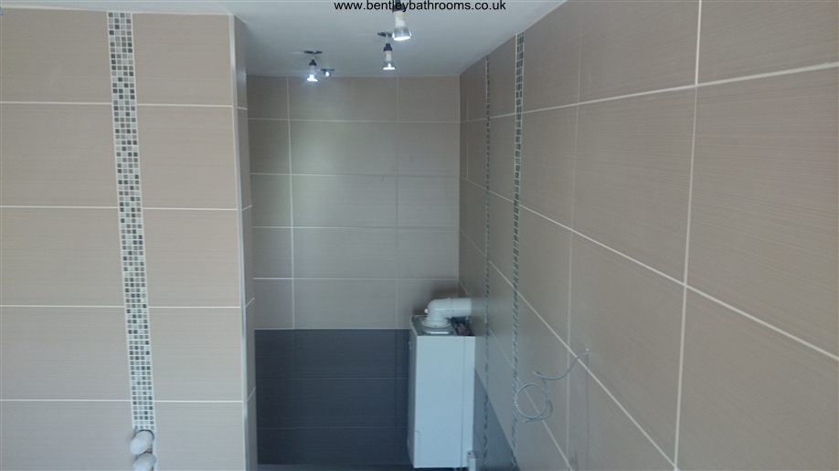 Full bathroom installation including wall and floor tiling, and all associated plumbing, electrics and joinery.