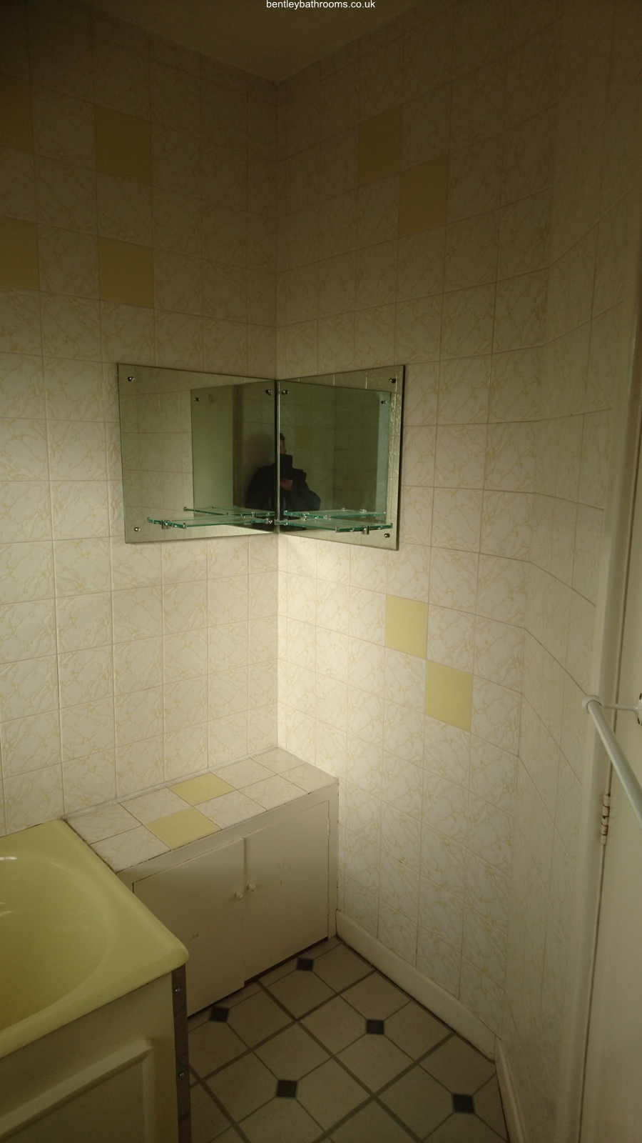 Full wet-room installation including wet-floor area with glass screen, toilet, wall-hung basin, mirror, heated towel rail, wall and floor tiling with feature wall and LED strip mood-lighting, upvc suspended ceiling with down-lights, accessories, and all associated plumbing, electrics and joinery.