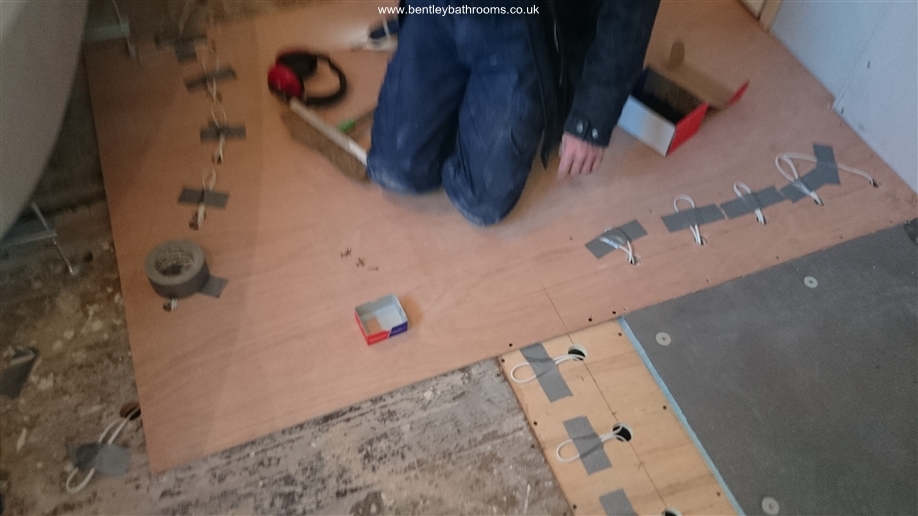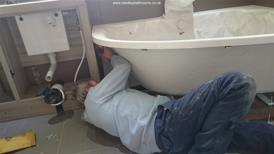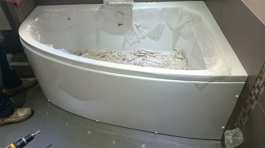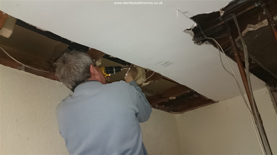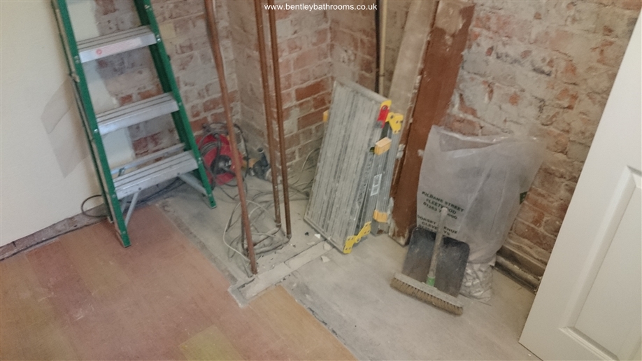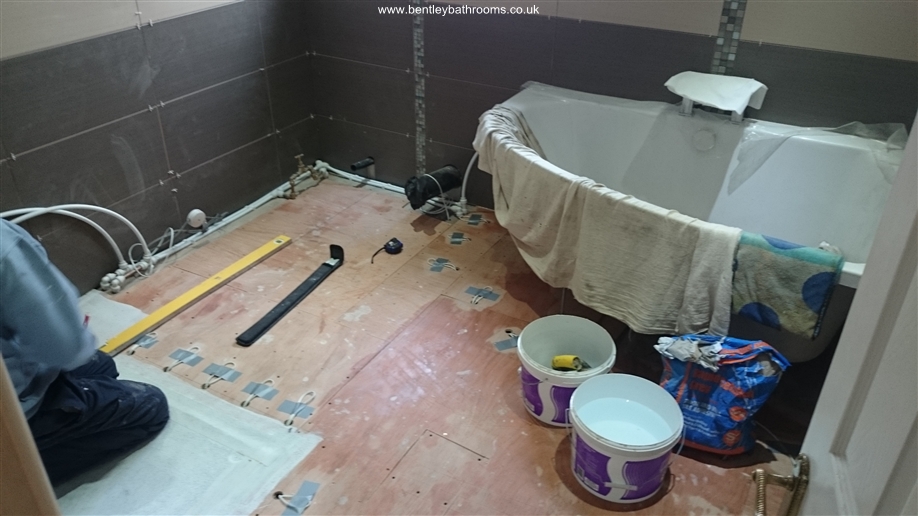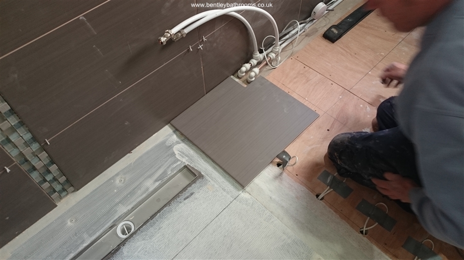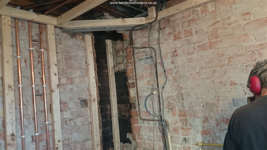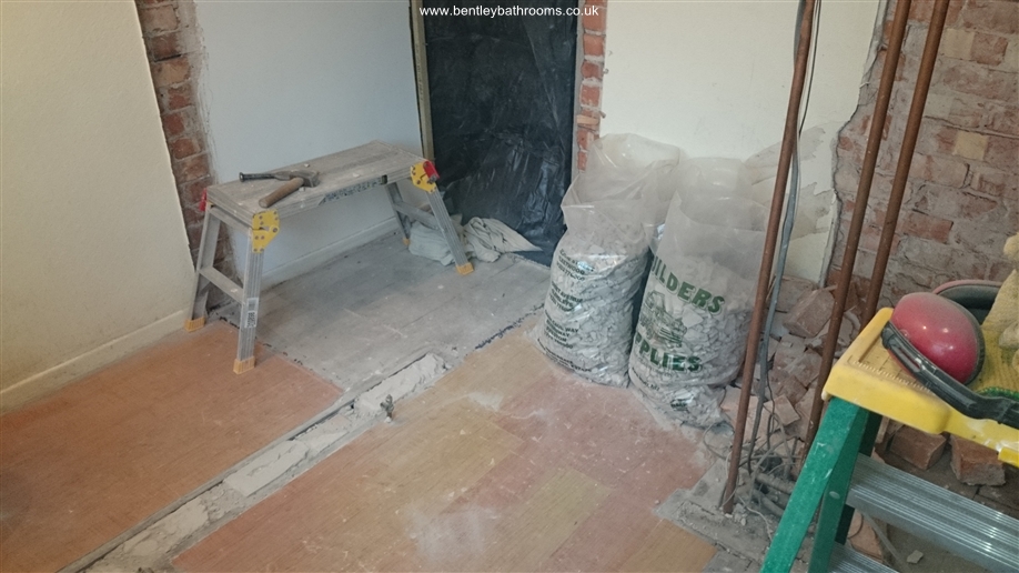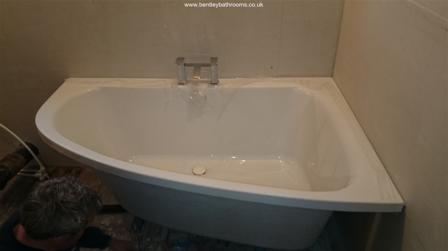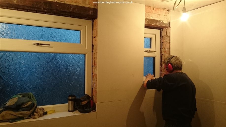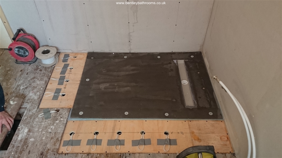 Full wet-room installation including UPVC ceiling with down-lights, full walls and floor tiling, chrome taps, trims and accessories, and all associated joinery, plumbing and electrics.